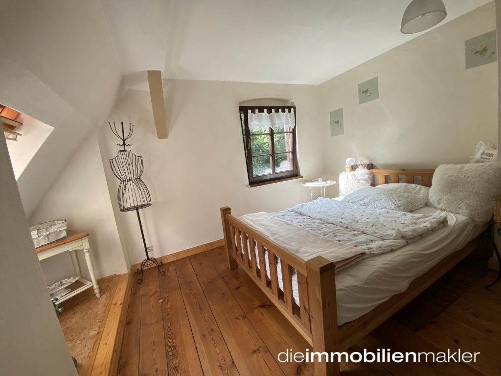 Über eine Holztreppe gelangt man in das Obergeschoss, das mit drei weiteren Zimmern aufwartet. Sichtbare Balken, warme Farben und liebevolle Details verleihen den Räumen eine besondere Geborgenheit. Ein weiteres Duschbad sorgt hier für zusätzlichen Komfort. Im ausgebauten Spitzboden steht Ihnen zudem ein heller, vielseitig nutzbarer Raum zur Verfügung – ideal als Arbeitsbereich, Spiel- oder Gästezimmer.