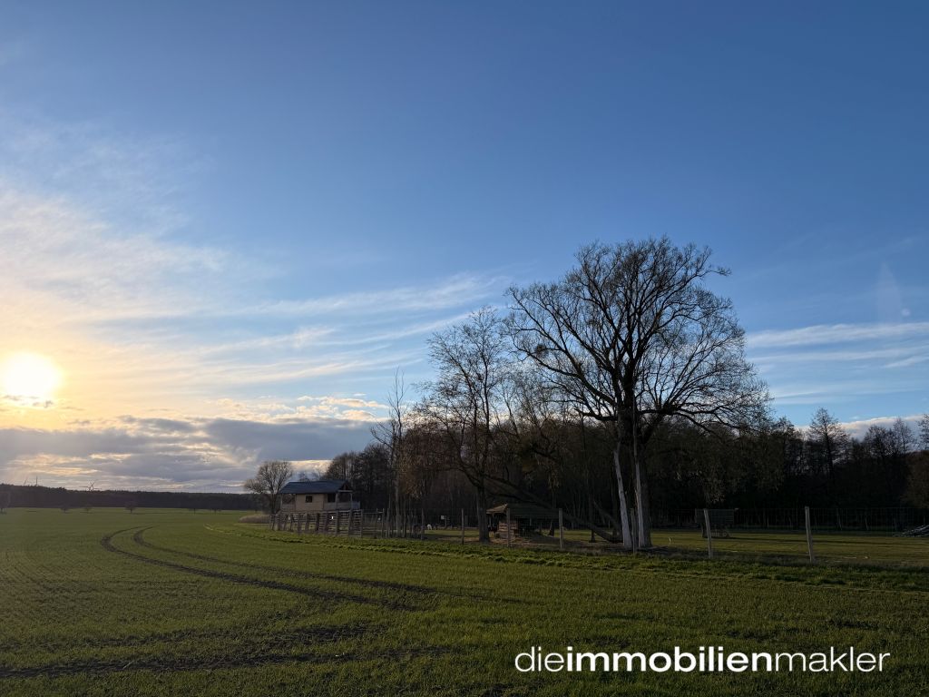 Für Tierliebhaber ist diese Immobilie besonders attraktiv: Auf dem großzügigen, komplett eingezäunten, naturbelassenen Grundstück ist eine Tierhaltung hervorragend realisierbar. Hinter und neben der Scheune erstreckt