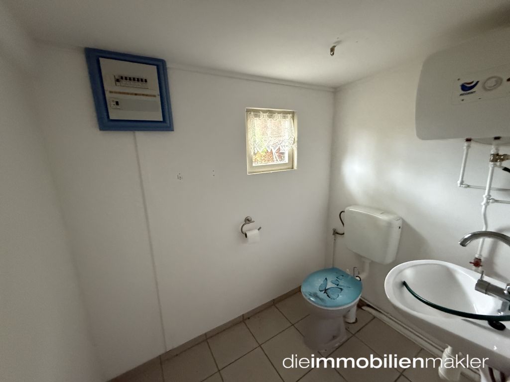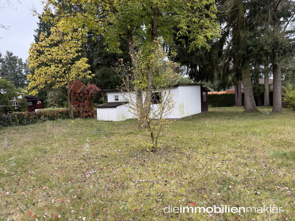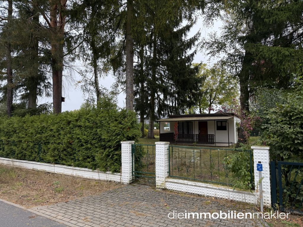 Das Grundstück ist bisher mit einem Bungalow bebaut. Dieser Fertigteilbungalow wurde 1965 auf dem Grundstück errichtet und hat eine Wohnfläche von ca. 30m². Er verfügt über Wohn- und Küchenbereich, WC mit Dusche und Schlafzimmer. Bei Bedarf kann er genutzt werden- er ist in einem gepflegten Zustand. Weiterhin befinden sich auf dem Grundstück zwei Garagen – die zu Abstellzwecken ideal sind. Ein Brunnen mit Pumpe zur Bewässerung des Grundstückes ist vorhanden.